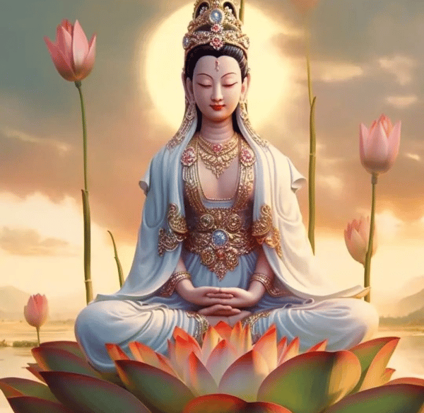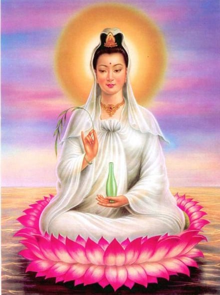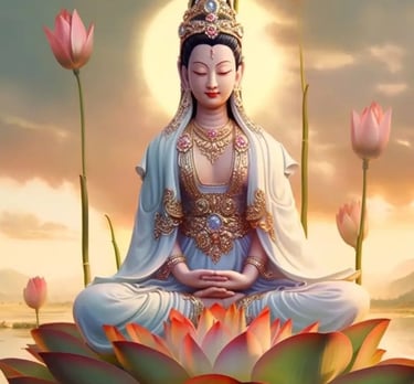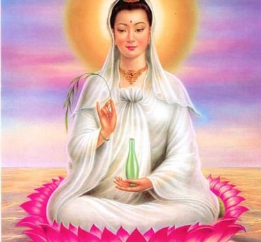 Kuan Yin é uma Deusa adorada em muitos países orientais. Ela é conhecida como "aquela que ouve os lamentos do mundo" e é considerada a personificação do aspecto feminino da criação. É a Mãe Divina que ama incondicionalmente seus filhos, sem julgamentos e discriminações.